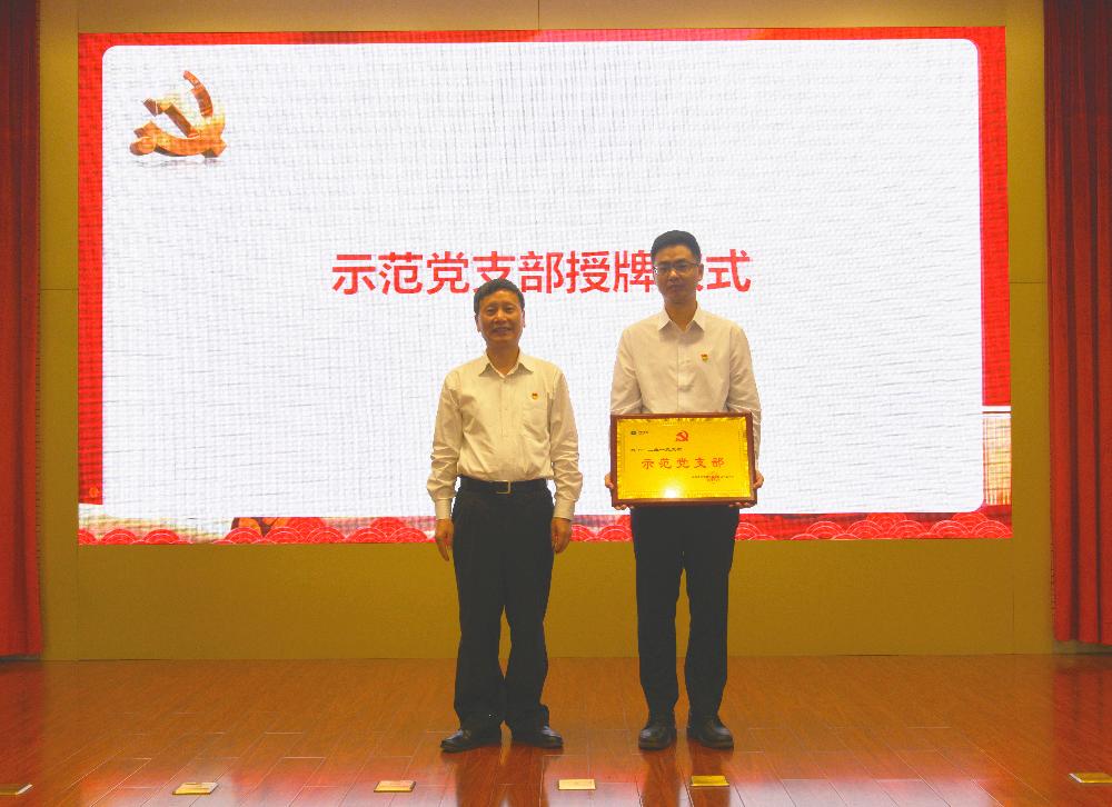 会议还举行了示范党支部授牌仪式。公司党委书记、董事长李儒冠向工业一党支部颁发示范党支部奖牌。