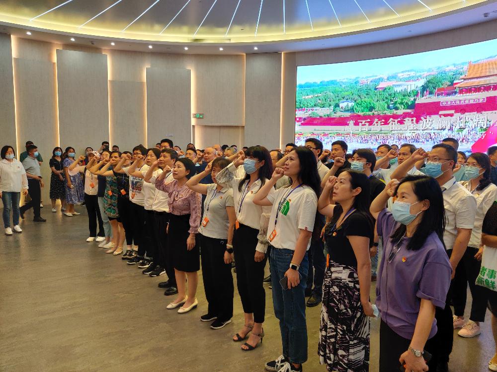 百年荣光,照亮历史和未来。在参观中共一大会址纪念馆期间,全体党员面对鲜红的党旗,一起重温入党誓词,铿锵有力的宣誓声响彻大厅。