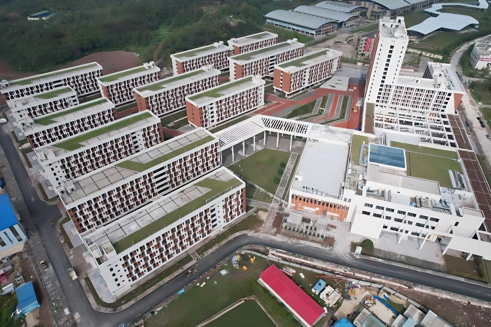 由中机中联EPC总承包的重庆南开两江中学校位于重庆市两江新区,建筑面积约11万平方米,是重庆首个采用全钢结构建造的学校。