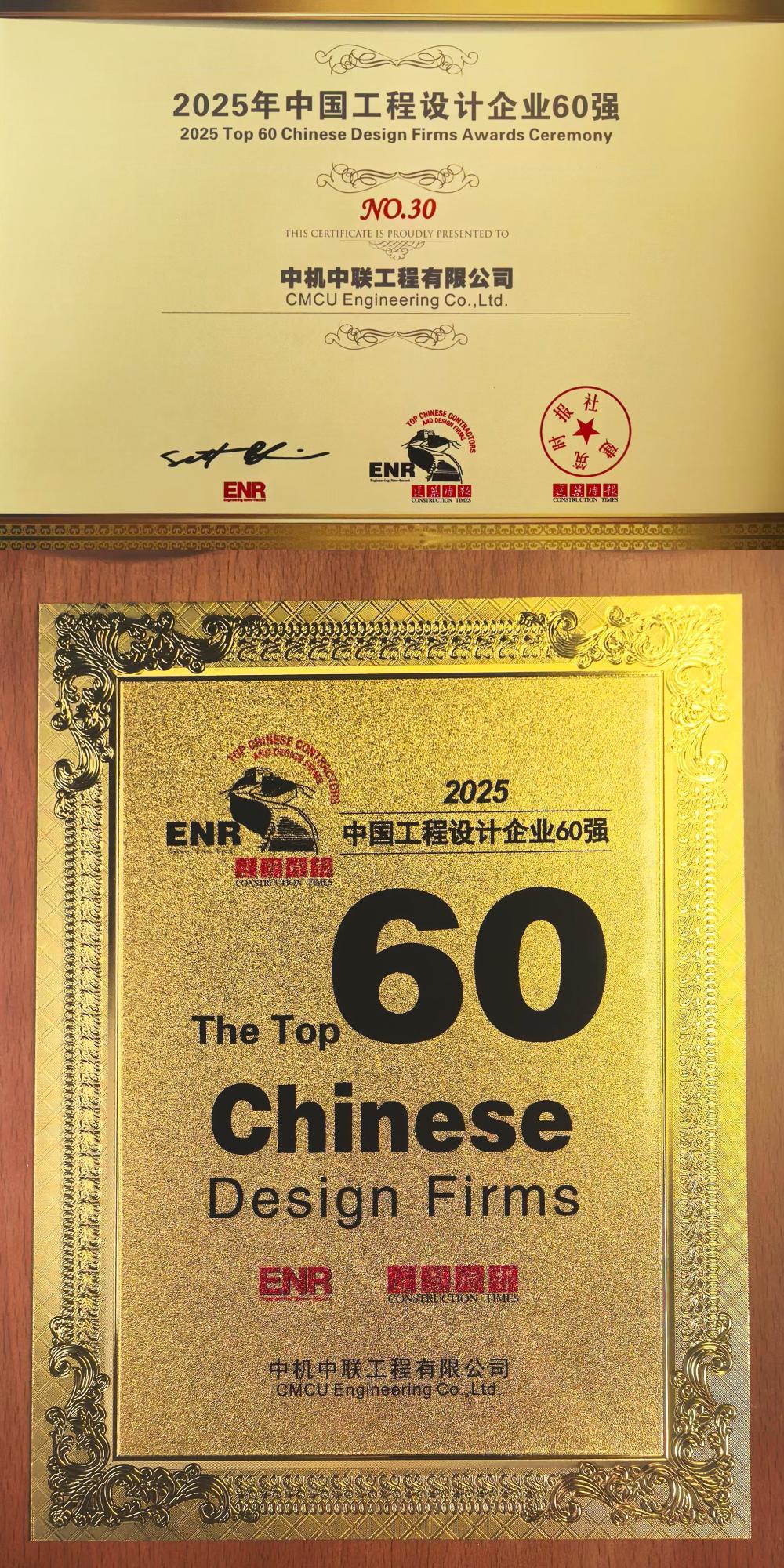 中机中联上榜2025ENR/建筑时报中国工程设计企业60强!