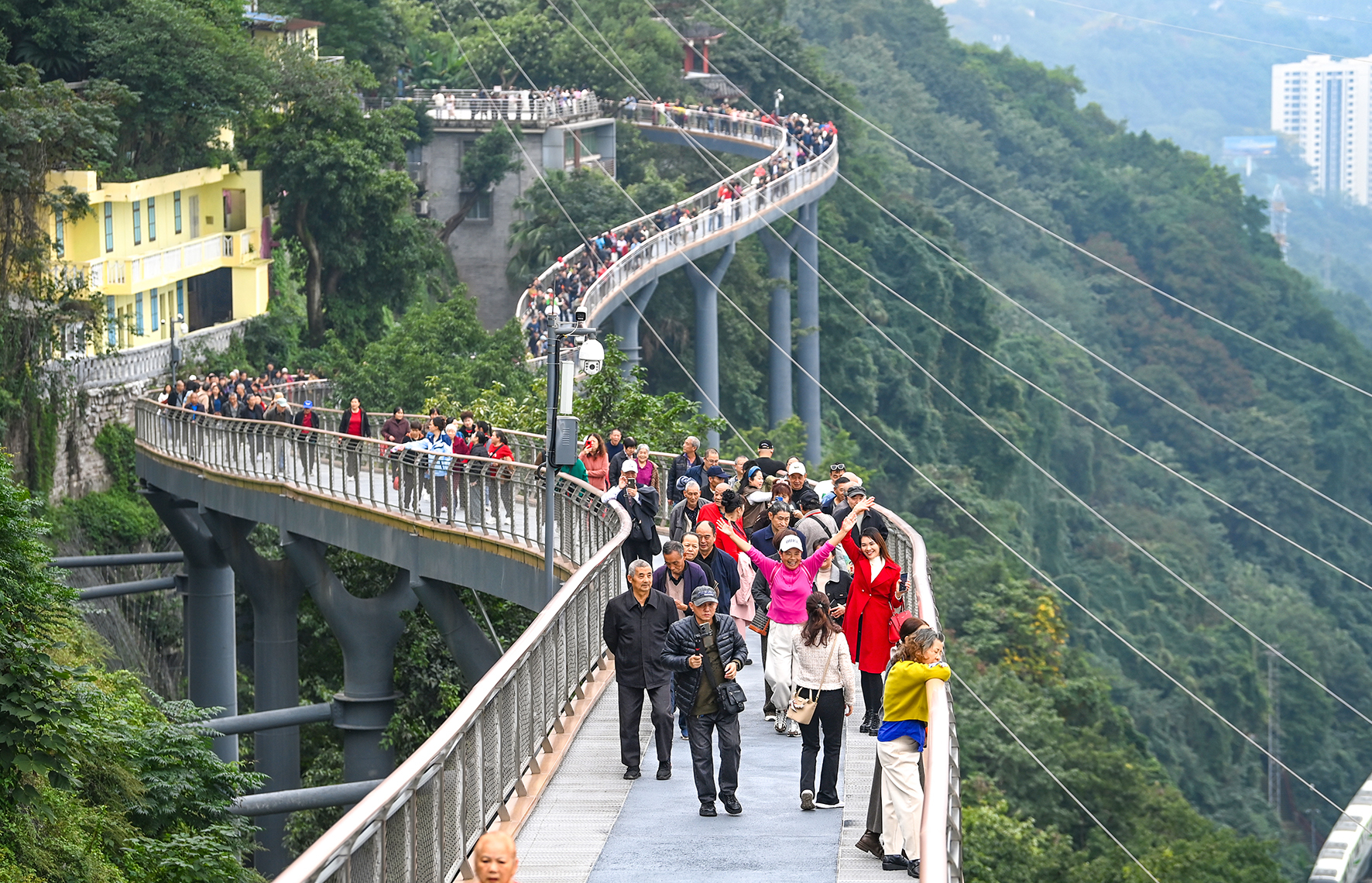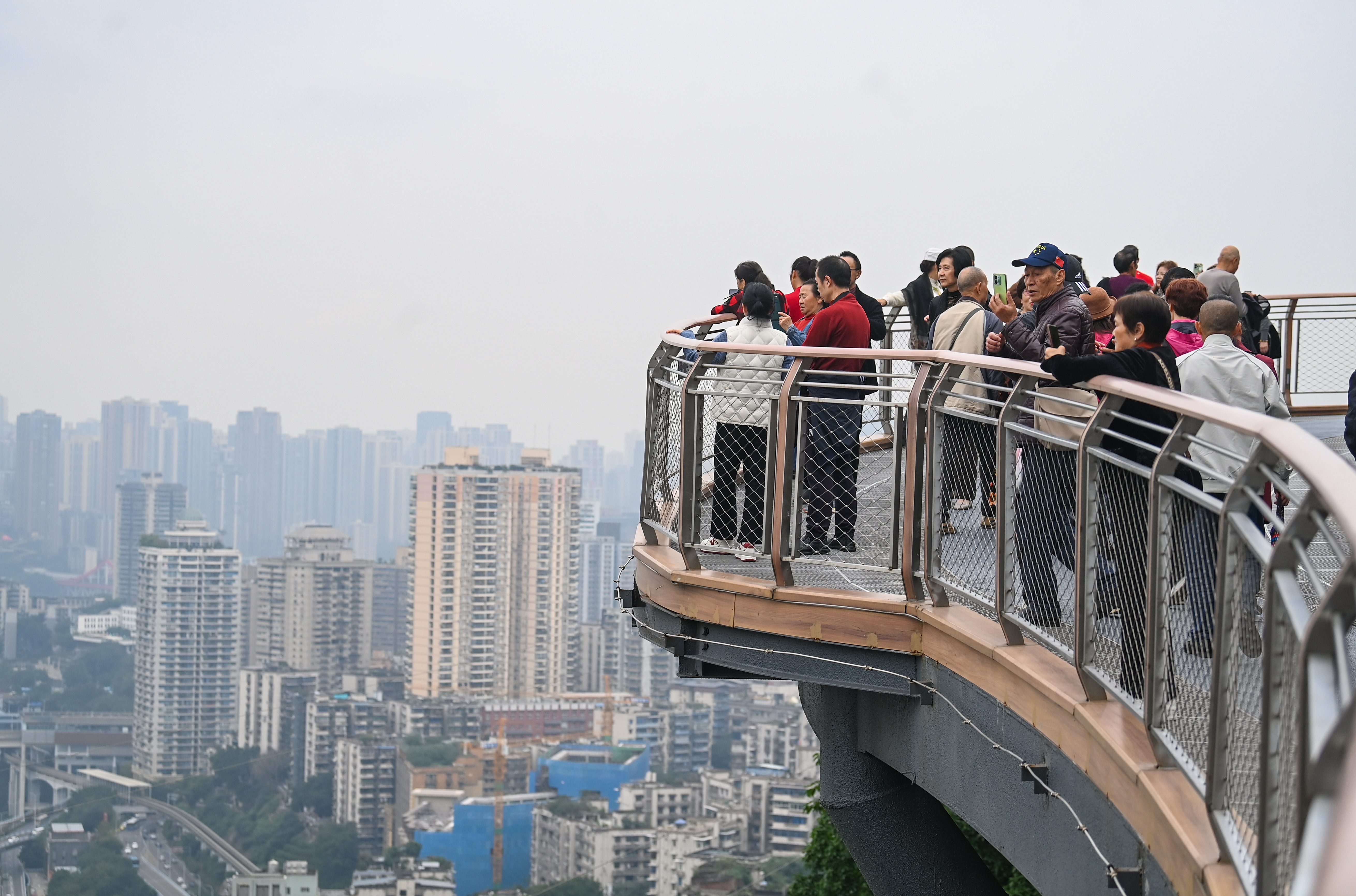 11月12日,重庆半山崖线鹅岭栈桥,众多市民正在打卡观景。重庆日报 郑宇 摄