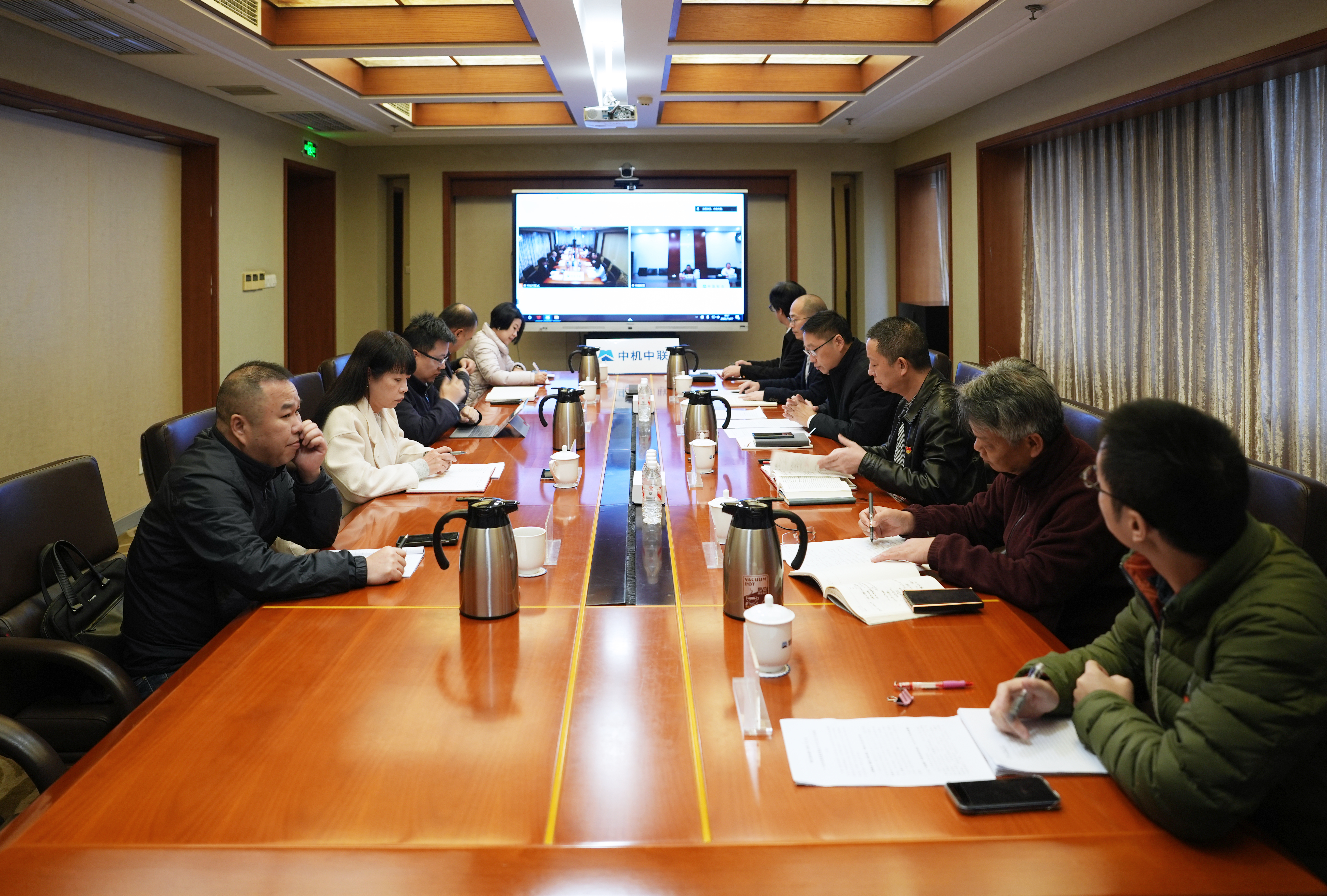 11月17日,中机中联党委召开2025年第八次理论学习中心组学习会,深入学习贯彻党的二十届四中全会精神,切实把思想和行动统一到习近平总书记重要讲话精神和全会部署上来,结合公司“十五五”规划开展专题研讨。公司党委书记、董事长赵永勃主持会议并作总结讲话,公司副总经理何渝和公司总经理助理方翔分别作重点发言,其他中心组成员作交流研讨发言。中国联合党委工作部副部长蔡玲以视频会议方式列席指导。