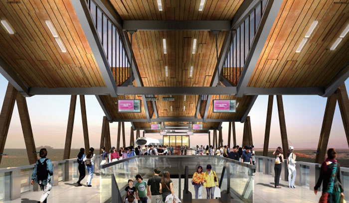 “山水重庆”是10号线的概念性主题,设计从基本功能空间出发,将站厅层、站台层、屋面对应重庆山水格局中的江岸、人居空间、山峦地貌,从而映照“山水重庆”抽象概念。同时,设计传承传统巴渝建筑中的支撑结构,结合现代建筑手法,使用木材、刚才、竹胶合板等绿色建筑材料,让“山水重庆”的空间概念在高架车站中立体呈现。