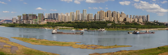 本工程位于重庆市南岸区金辉半岛,相邻南滨路,和渝中半岛隔江相望,综合利用了东侧金辉公园、西侧长江江景两大景观系统的优势景观资源。场地内南北高差23.0米,因此利用场地分台放坡、建筑错层等方式减少地形高差的影响,地下车库相应采用分台、斜板车库的形式,设计和施工难度较大。