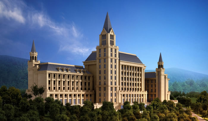本酒店立面设计采用法式建筑风格,用优雅线条勾勒出经典之美。在建筑外观极度考量,既从整体层面对建筑进行把握,又善于在细节的雕琢上下功夫,采用对称造型,营造出一种恢弘的气势。普兰色孟莎式屋顶统领建筑整体,上部平缓,下部陡直,屋顶上镶嵌精致的老虎窗。外墙采用浅暖色石材贴面,细节处理上运用了法式廊柱、雕花、线条,令整座建筑充满层次感、立体感。法式建筑风格之美将高端阶层所追求的高贵居所表达的淋漓尽致,给人历久弥新的价值感,宛如屹立于城市间的艺术珍品。