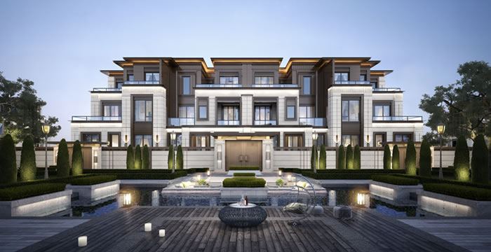 2.通过BIM精细化设计对叠拼和联排别墅的外立面进行建模分析,充分表达了立面造型和线条的细节,并复核出机电管线对立面效果的影响,从而提出优化建议供业主方参考以便做出修改决策。
